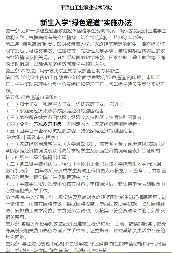 亲爱的同学们,为更好服务新生,我校采用“互联网+移动端”的数字化迎新方式,让新生入学报到更便捷。2021级新生入校报到前须登录平职学院迎新系统,在完成本人账号绑定、新生数据采集之后,完成网上缴费,查看学校关于迎新的最新通知公告。新生可使用手机查看自己的班级信息和当前需要办理的入校流程各环节办理情况等。家庭困难学生可以申请绿色通道缓缴学费,快速办理入校手续。