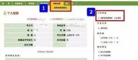 志愿保存成功,菜单“填报志愿”会变成“浏览志愿”,工作进度的“点击填报”会变成“点击查看”,同时,工作进度下方的收件箱-个人信息中会收到一条信息。