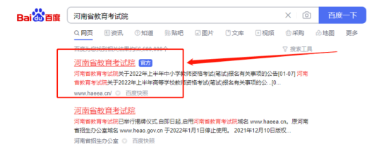 考生登录河南省教育考试院官网(http://www.haeea.cn/),或在搜索引擎中输入“河南省教育考试院”,点击带有“官方”标识的网站。